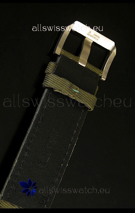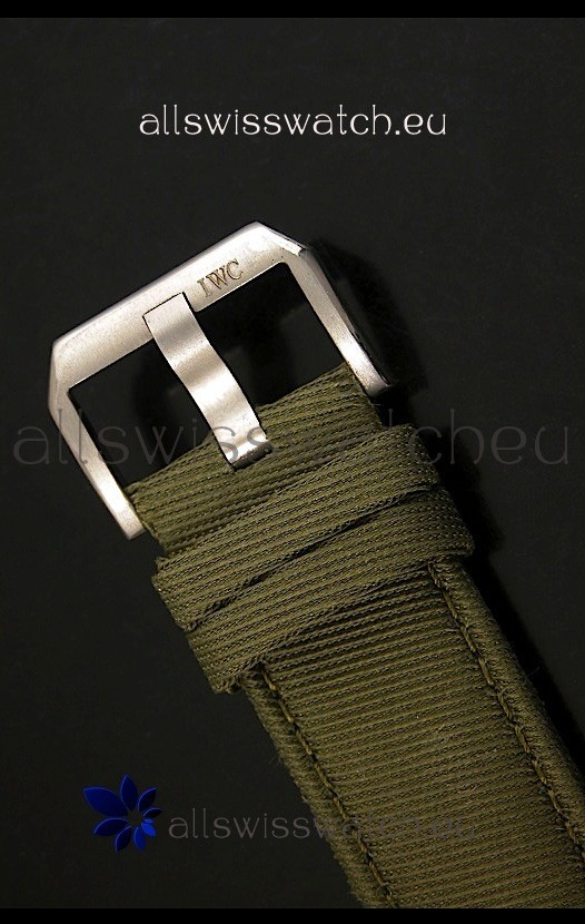 Genuine Green Nylon Strap with IWC Markings and Engravings with Tang Stainless Steel Buckle