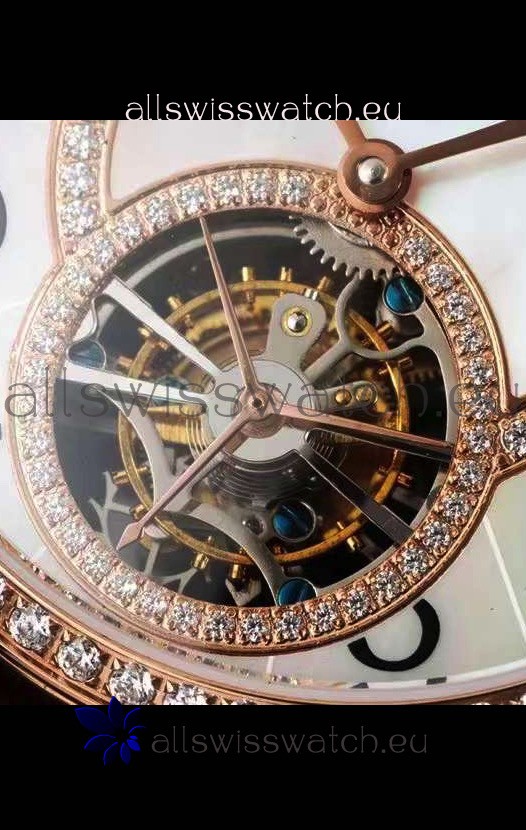 White Dial with Tourbillon Located at 6 O'Clock encrusted with Diamonds Rims on Dial