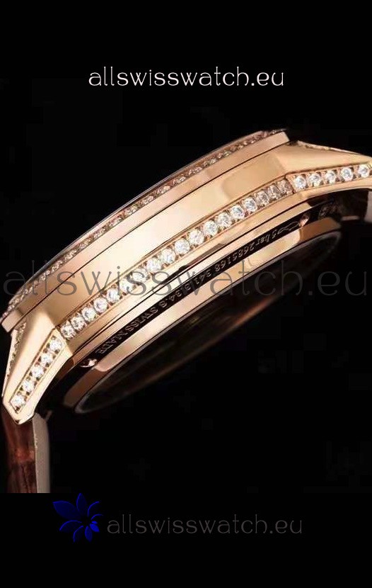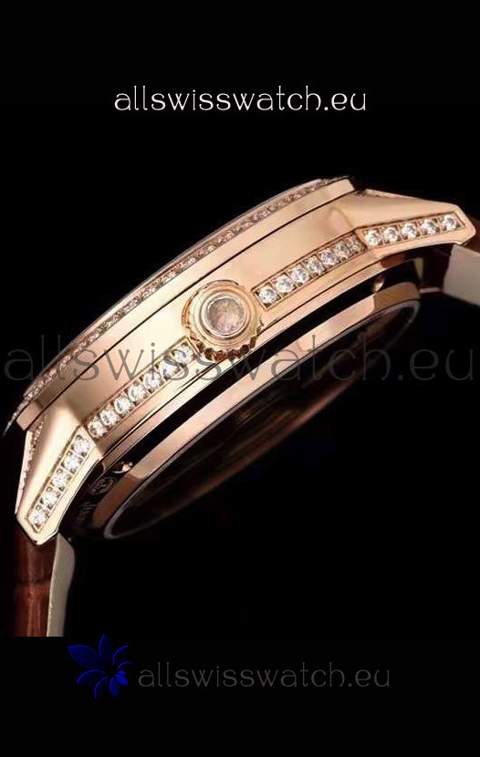 Rose Gold Plating on 904L Polished Stainless Steel Case with Open Case Back