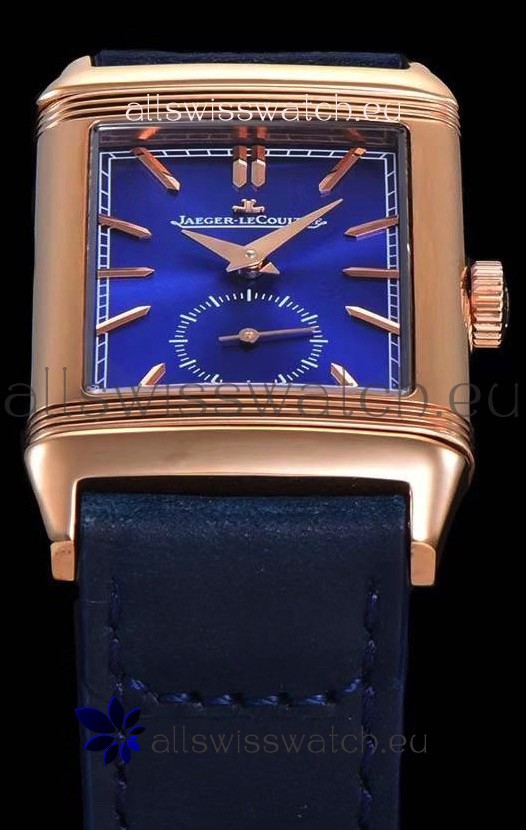 Jaeger LeCoultre Reverso Swiss Replica Watch in Rose Gold Casing - Blue Dial
