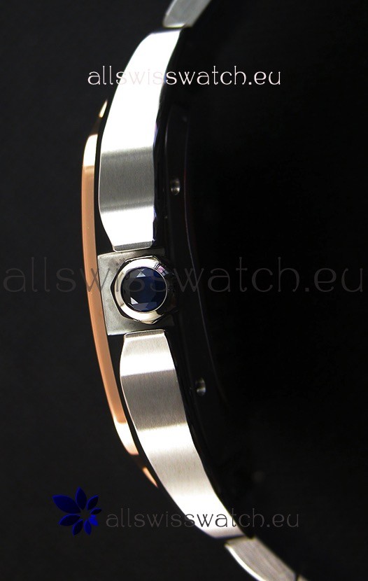 316L Stainless Steel Casing with complete with Cartier Markings as per the Originals. Rose Gold Plated Bezel with Rose Gold Screws