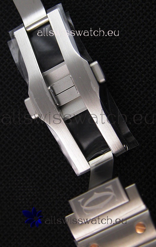 316L Steel Strap linked with Screws with Folding Clasps complete with Cartier Markings and Engravings. Quick Release System as per the Originals. Rose Gold Plated Screws on Strap