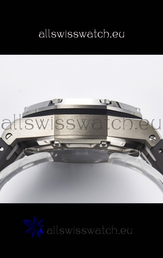 Machinery Layout exactly like Audemars Piguet 3126 Calibre Movement used in Authentic Audemars Piguet Offshore Watches built on Genuine Swiss 7753 Movement architecture with Functional stopwatch feature like the authentic with Seconds hand running at the 12 o clock Sub Dial