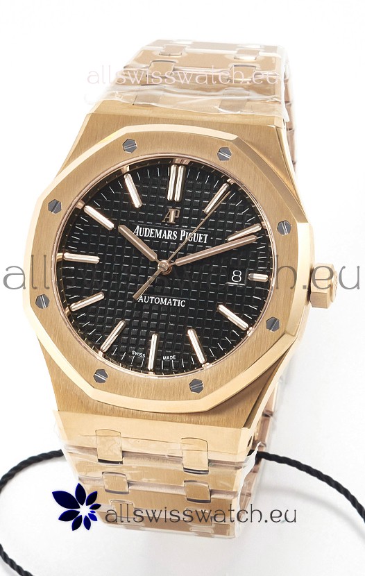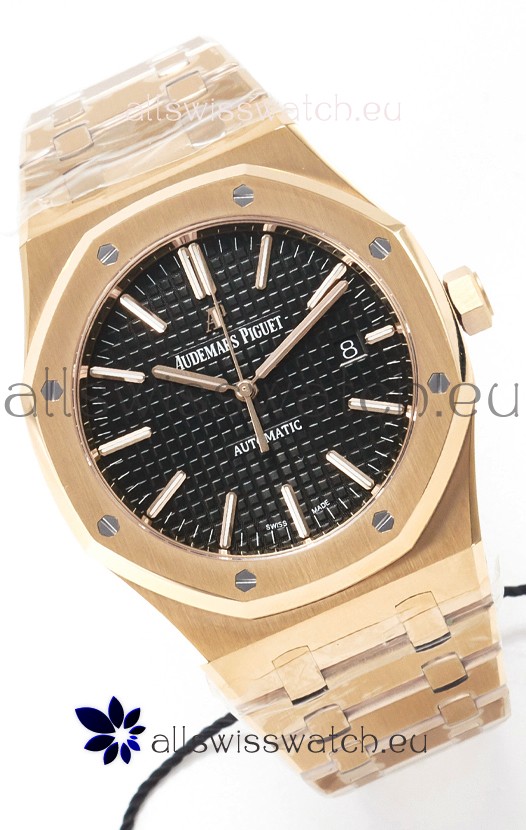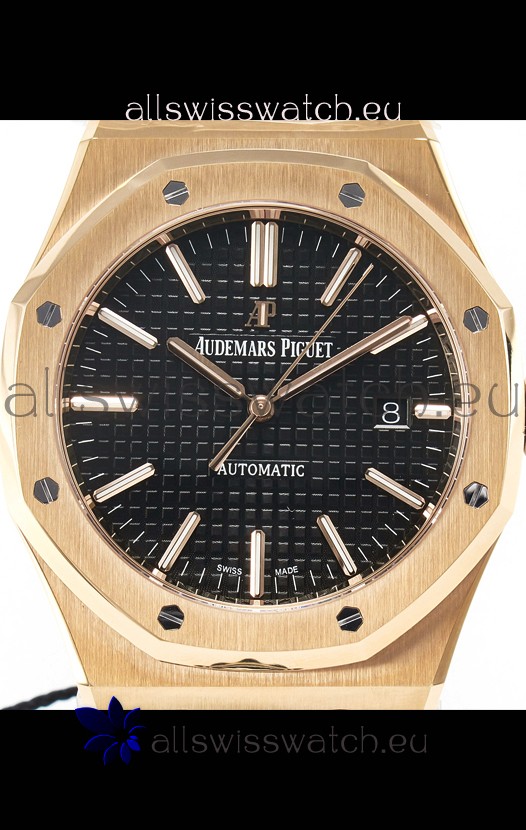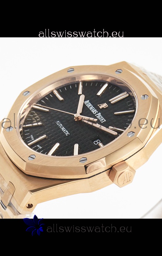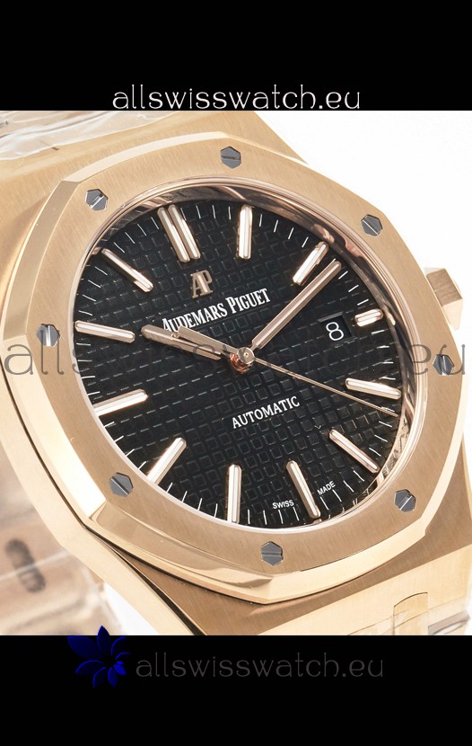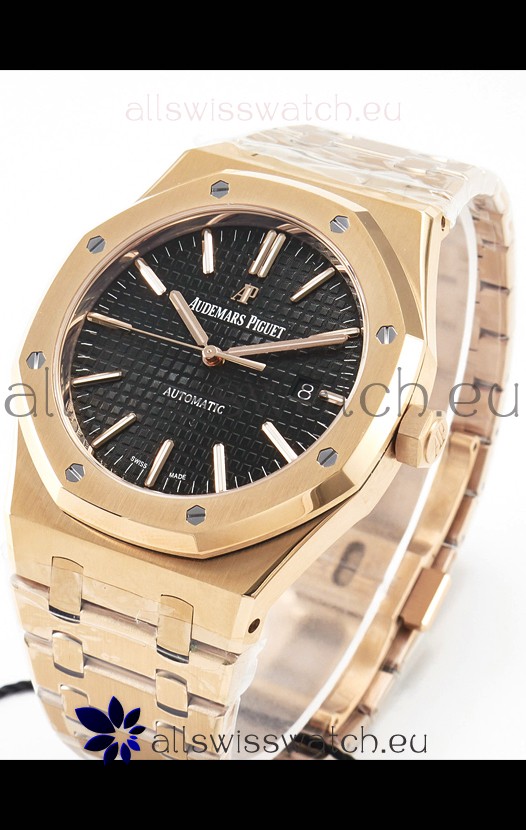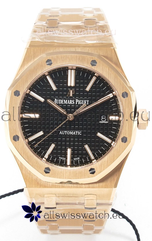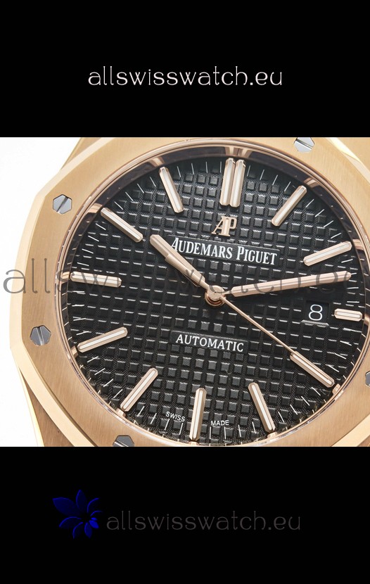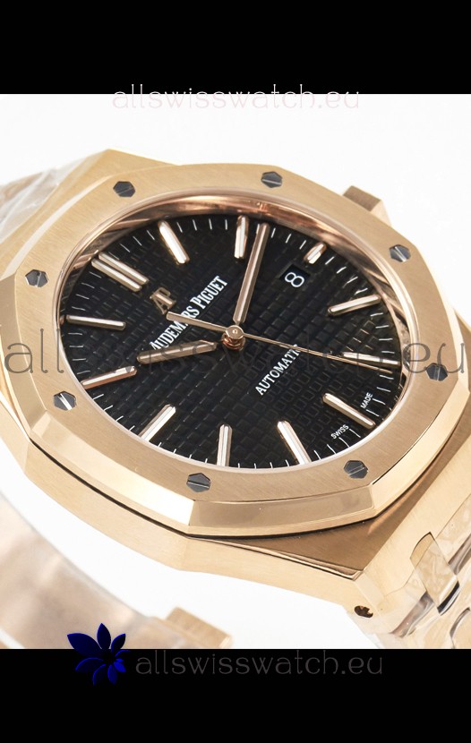 Audemars Piguet Royal Oak 15400 41MM Rose Gold Black Dial Super Clone Replica Watch
