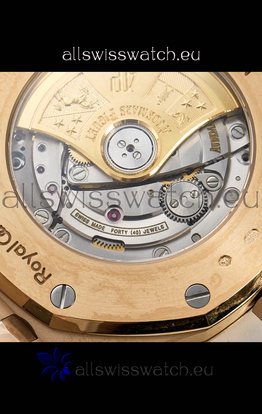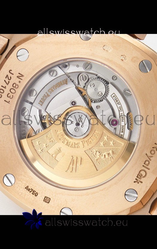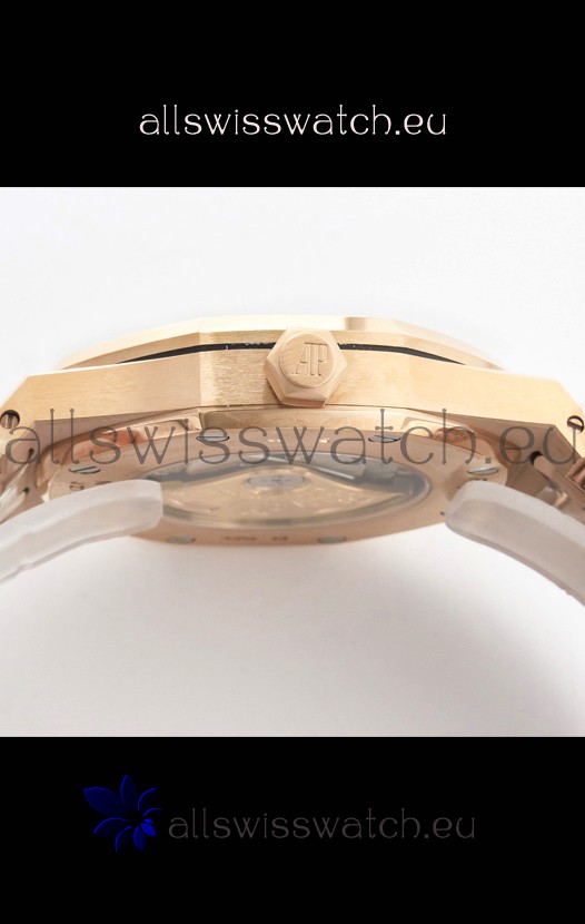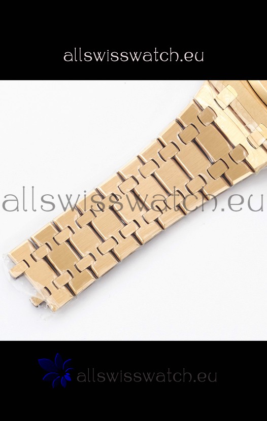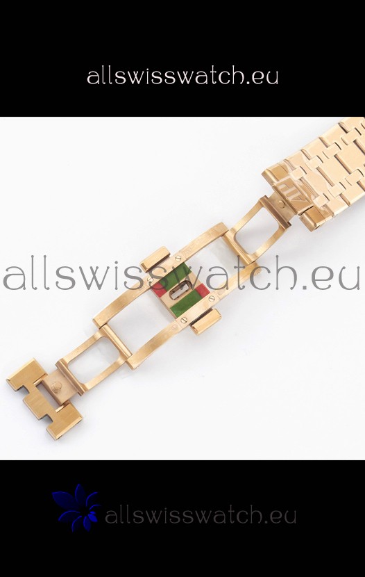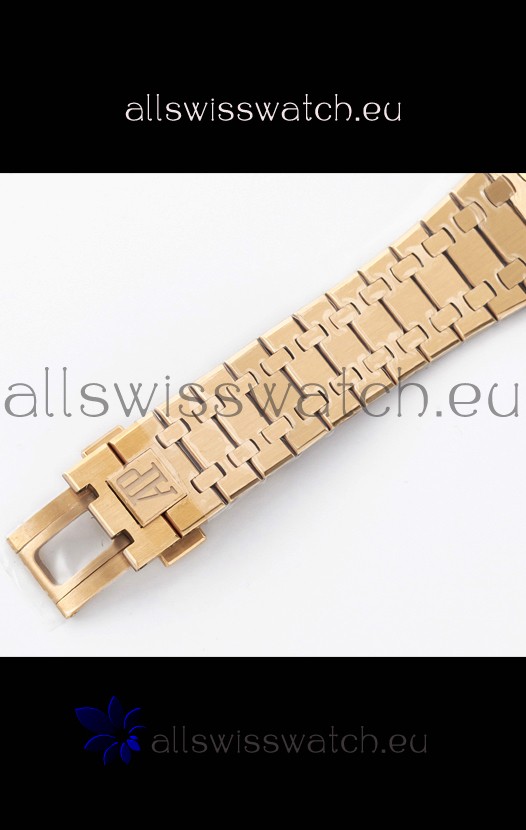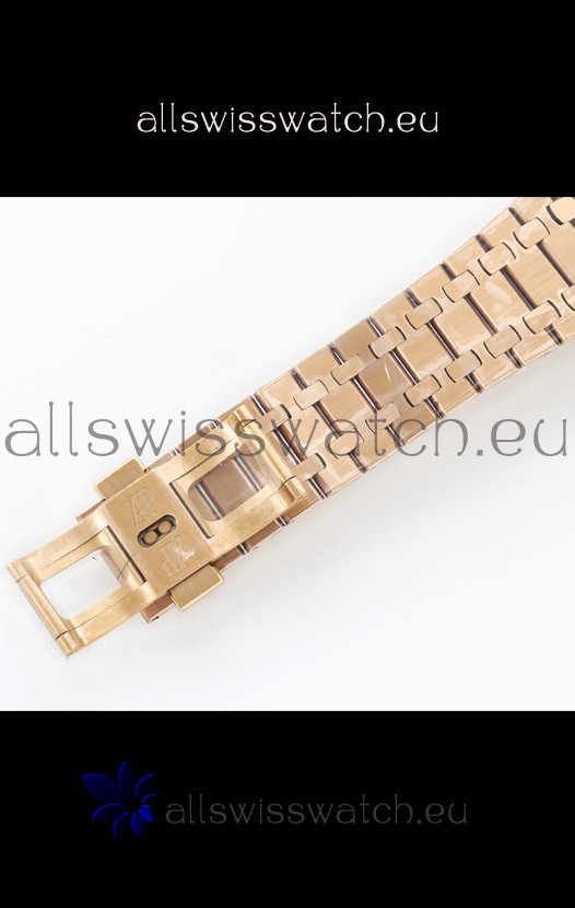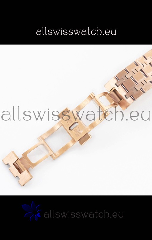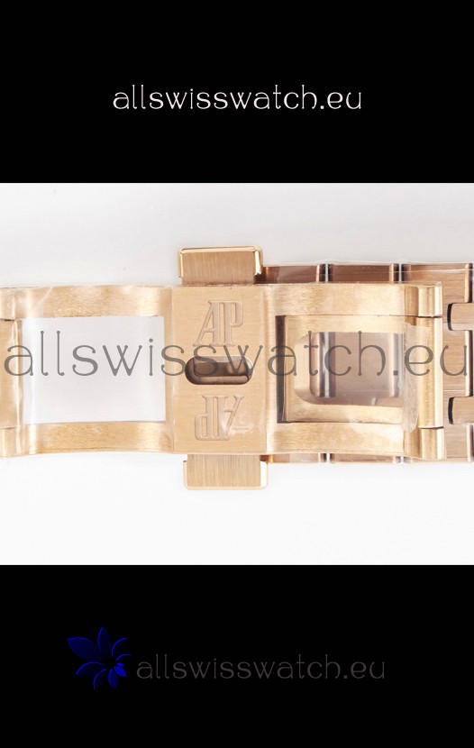 18K Rose Gold Plating on 904L Solid Stainless Steel Strap with smooth edges with AP Folding Clasp complete with AP Markings and Engravings