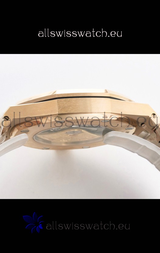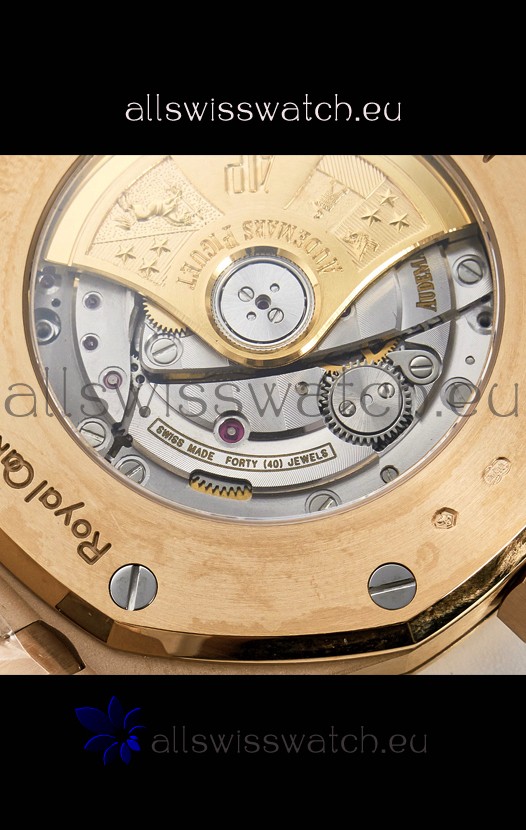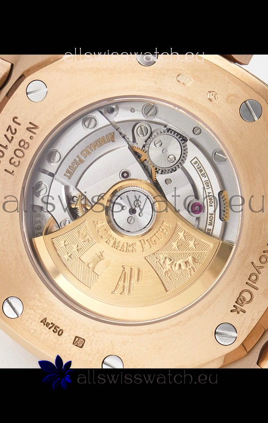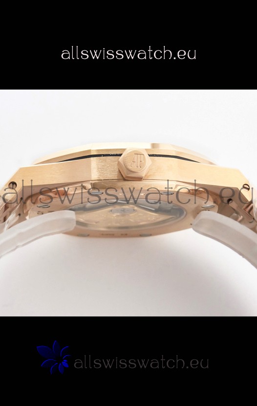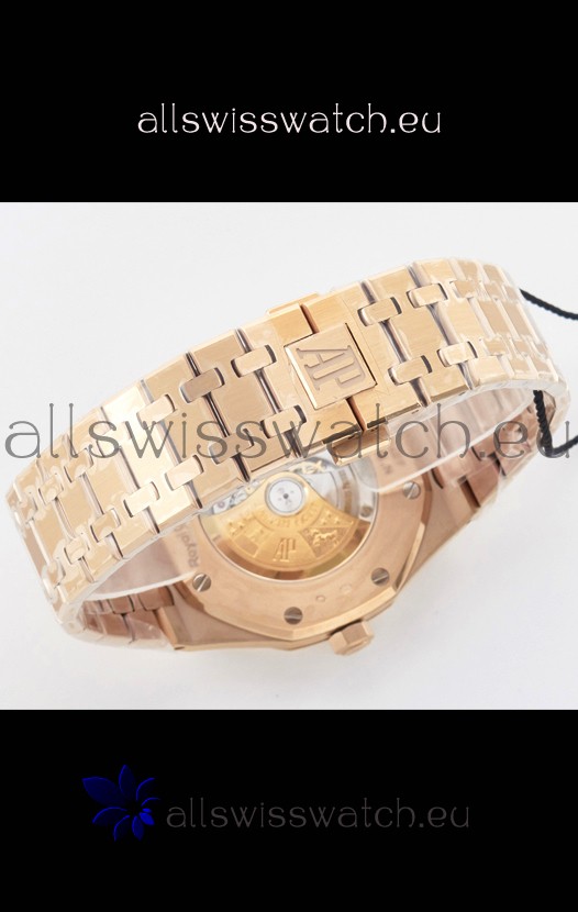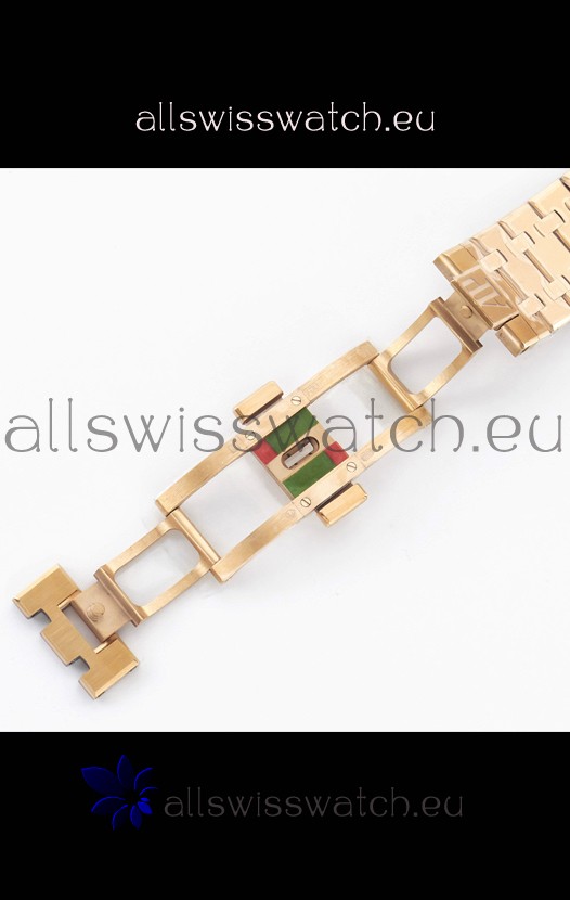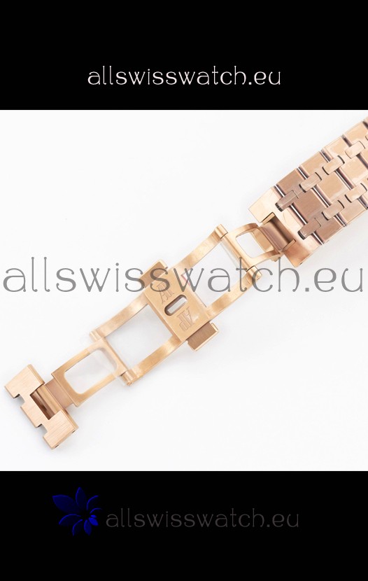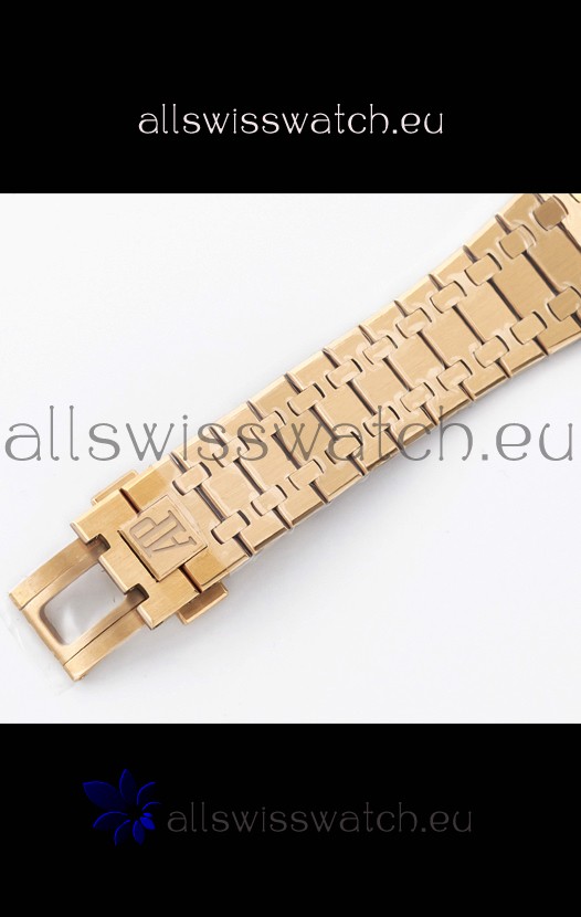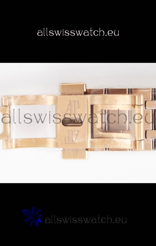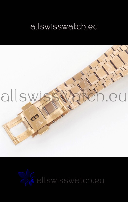 18K Rose Gold Plating on 904L Solid Stainless Steel Strap with smooth edges with AP Folding Clasp complete with AP Markings and Engravings