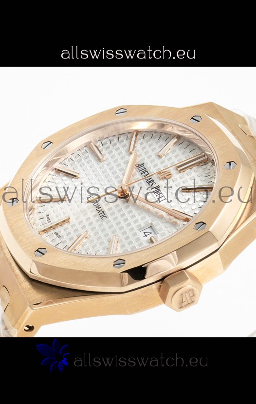 Audemars Piguet Royal Oak 15400 41MM Rose Gold White Dial Super Clone Replica Watch