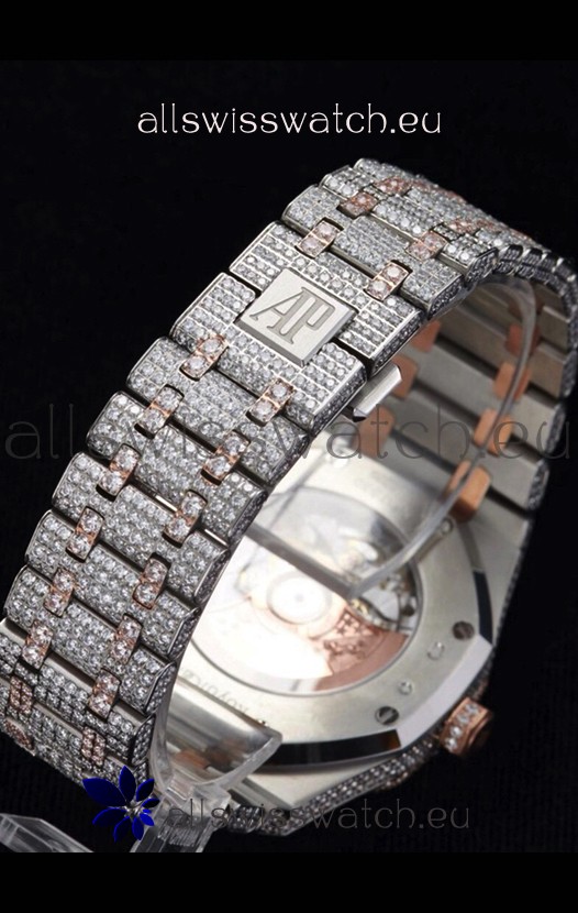 904L Steel - Two Tone Rose Gold Plated Casing with Moissanites Embedded Casing. Open Back Casing in Rose Gold Plated Rear Casing