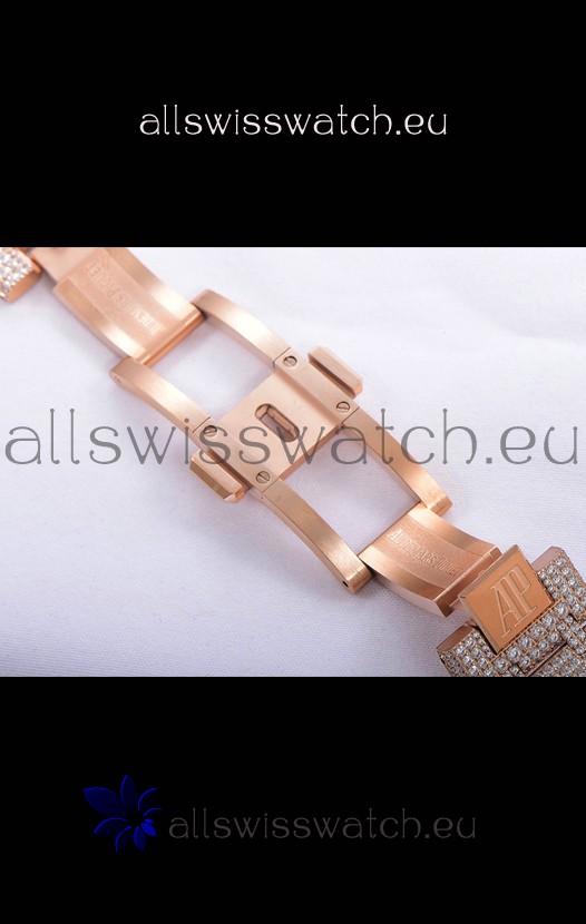 You're reviewing: Audemars Piguet Royal Oak 15400 Iced Out Stick Markers Dial in Rose Gold Casing Swiss Replica Watch