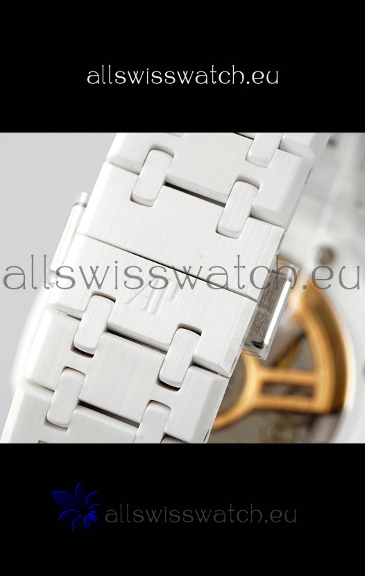 Lightweight White Ceramic Strap with smooth edges with AP Folding Clasp complete with AP Markings and Engravings