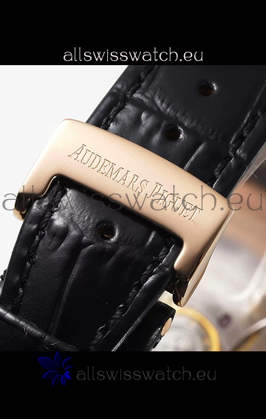 Genuine Black Leather Strap with AP Folding Clasp complete with AP Markings and Engravings