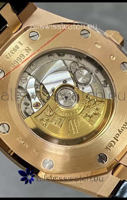 Rose Gold Plating on 904L Solid Stainless Steel Case and Bezel. Open Case Back with Stainless Steel Cover