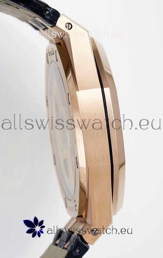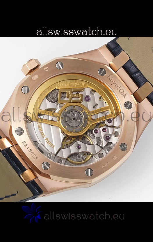 Rose Gold Plating on 904L Solid Stainless Steel Case and Bezel. Open Case Back with Stainless Steel Cover