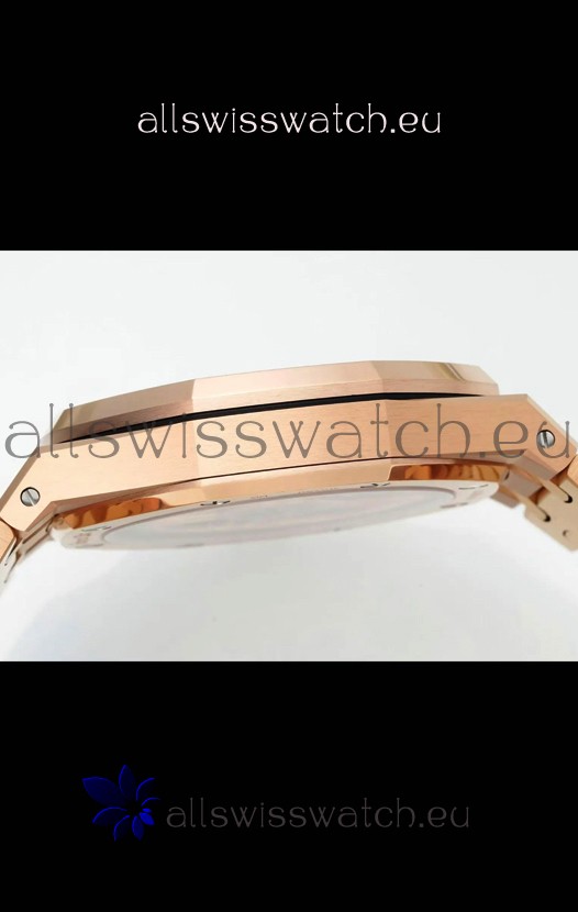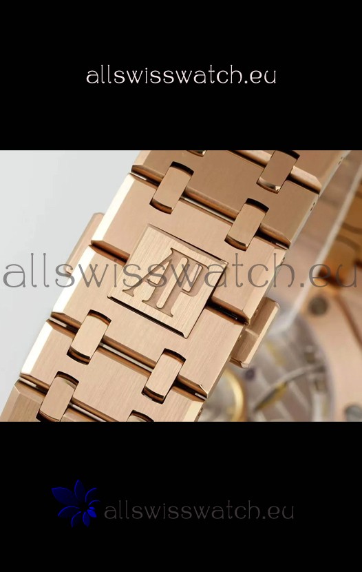 18K Rose Gold Plating on 904L Solid Stainless Steel Strap with smooth edges with AP Folding Clasp complete with AP Markings and Engravings