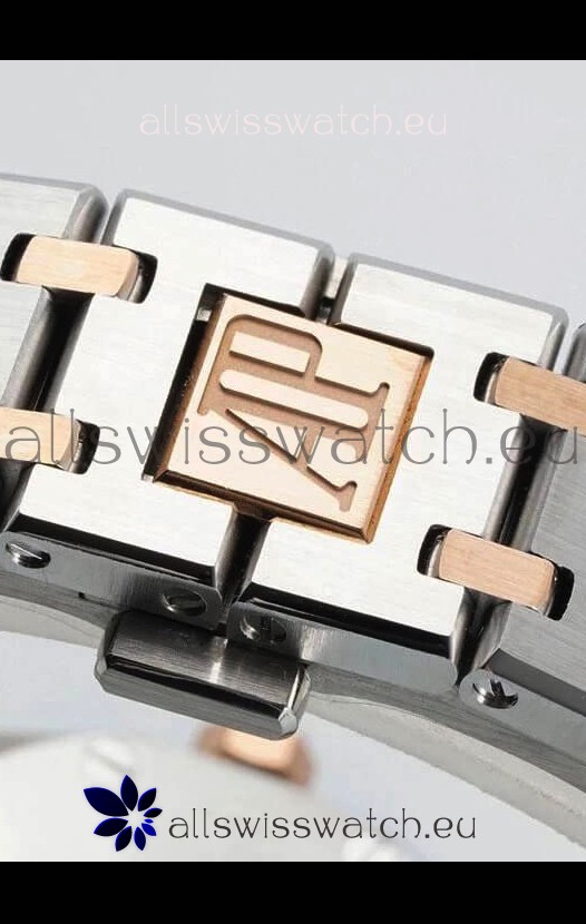 Two Tone Rose Gold Plating on 904L Solid Stainless Steel Strap with smooth edges with AP Folding Clasp complete with AP Markings and Engravings