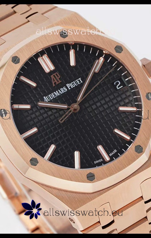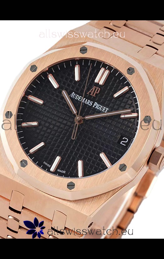 Audemars Piguet Royal Oak 37MM Black Dial Rose Gold Watch in 3120 Movement - 1:1 Mirror Replica