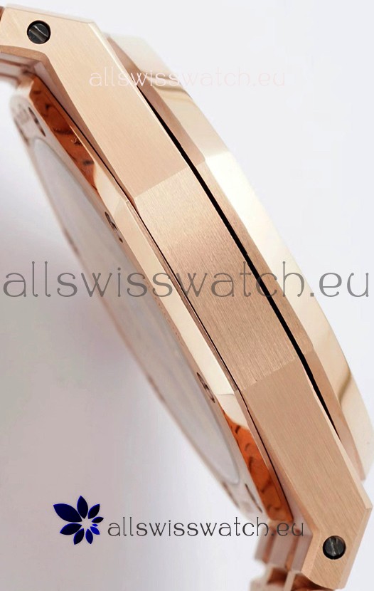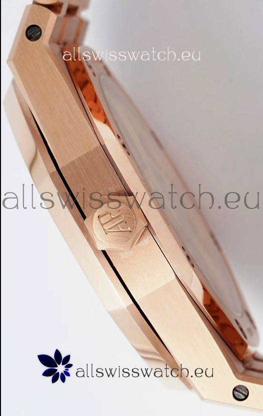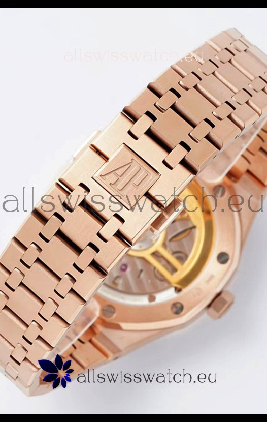 18K Rose Gold Plating on 904L Solid Stainless Steel Strap with smooth edges with AP Folding Clasp complete with AP Markings and Engravings