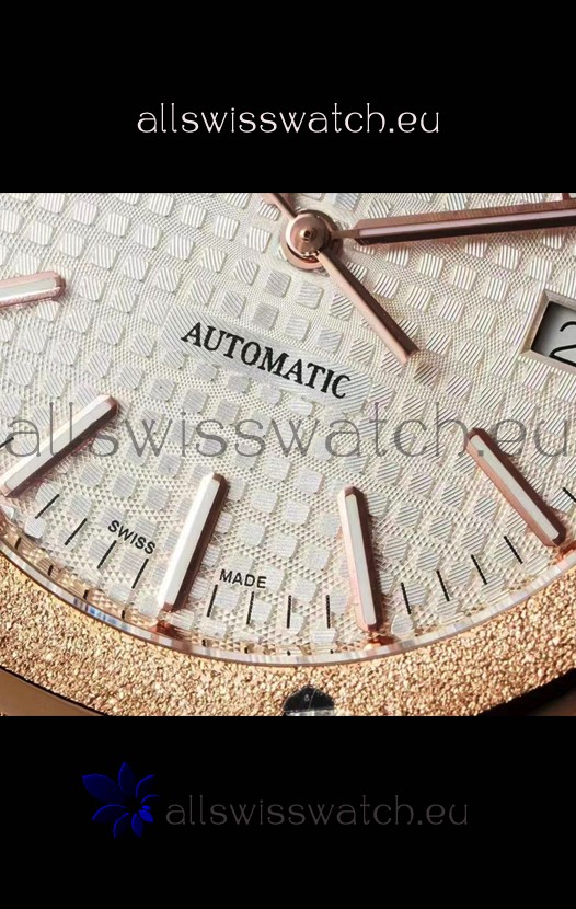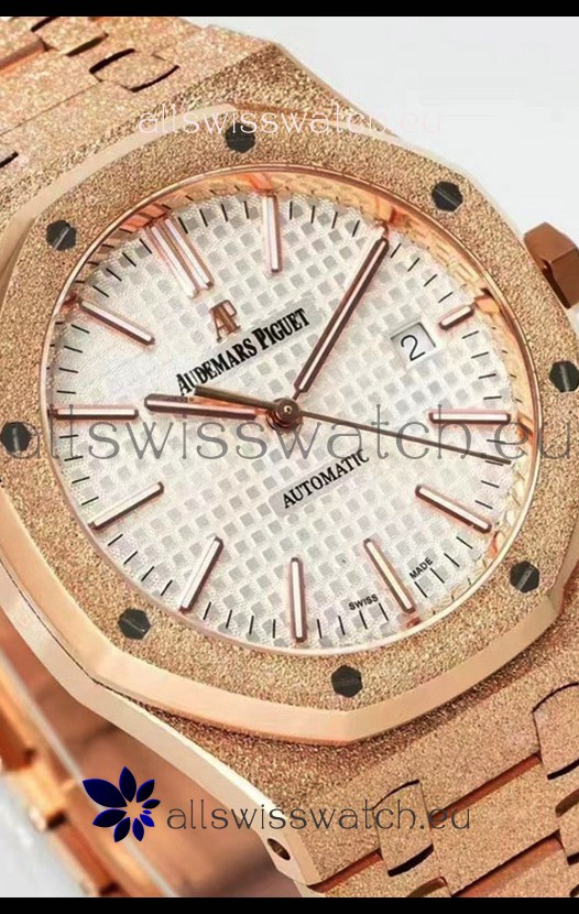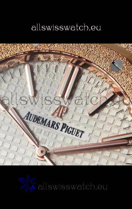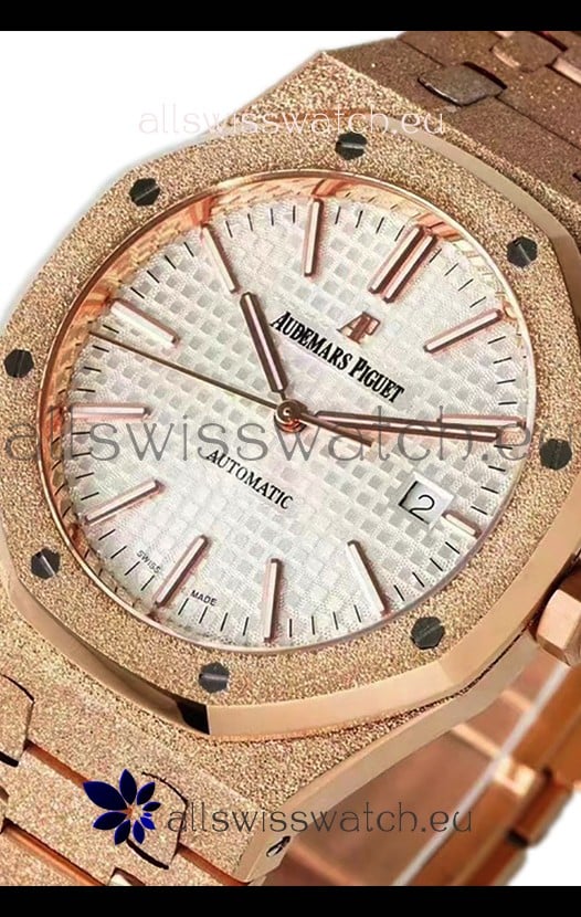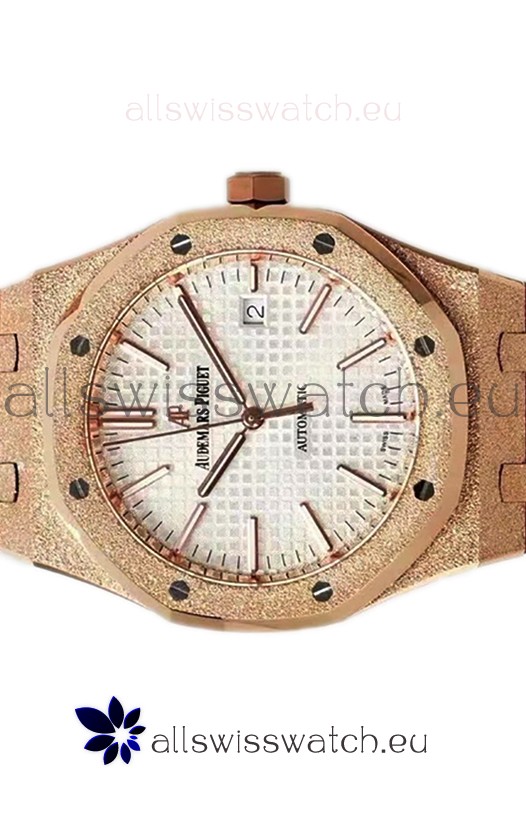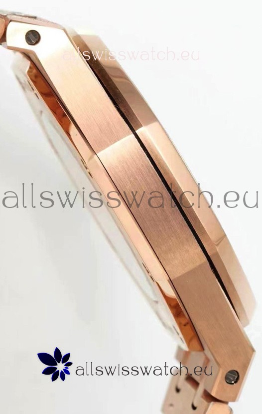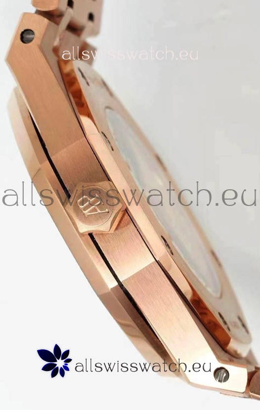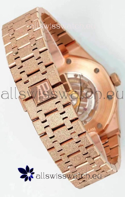 Rose Gold Plating on 904L Solid Stainless Steel Strap in Frosted Finish with smooth edges with AP Folding Clasp complete with AP Markings and Engravings
