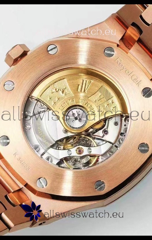Frosted Casing Finish on 904L Solid Stainless Steel Case with Rose Gold Plating. See through rear Casing