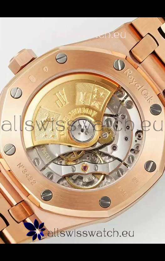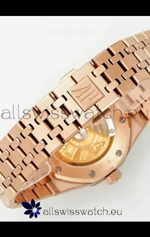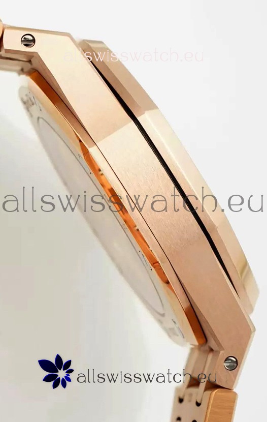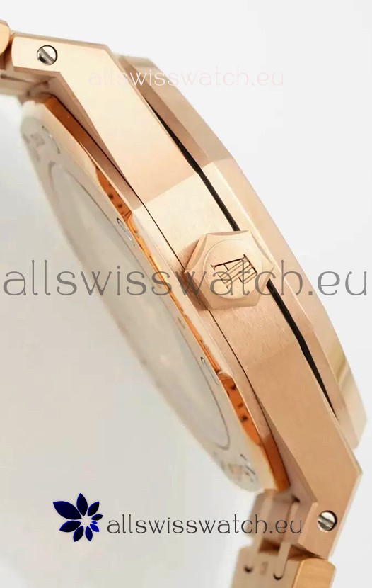18K Rose Gold Plating on 904L Solid Stainless Steel Strap with smooth edges with AP Folding Clasp complete with AP Markings and Engravings