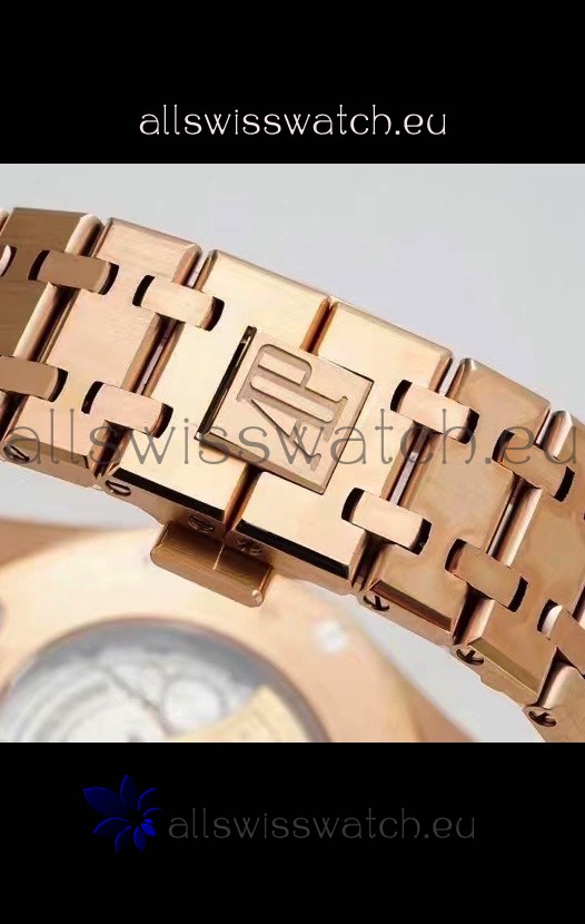 18K Rose Gold Plating on 904L Strap linked with Screws, AP Style Folding Clasps exactly like the originals