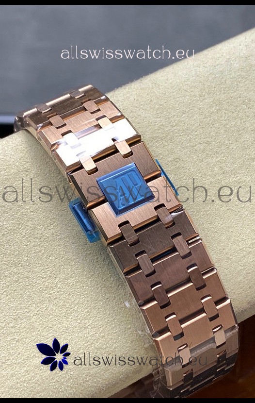 Rose Gold Plating on 904L Stainless Steel Strap completed with AP Markings and Engravings as per the originals and AP Folding Clasp