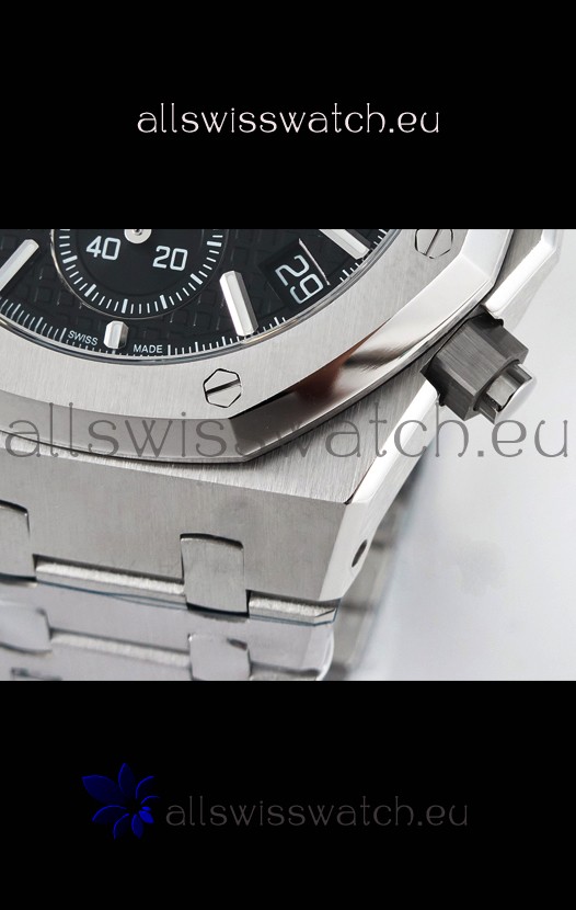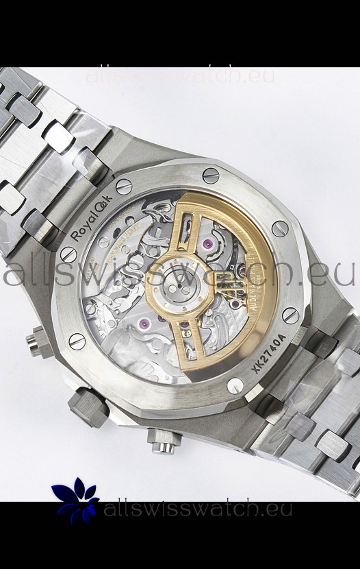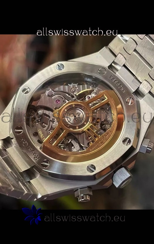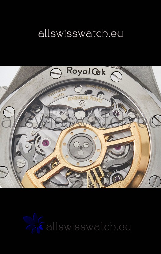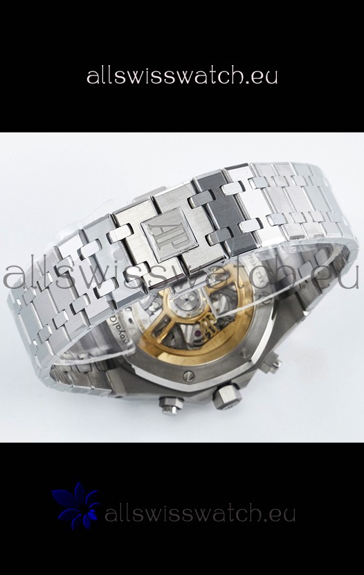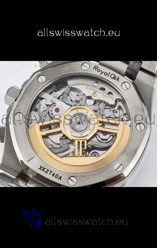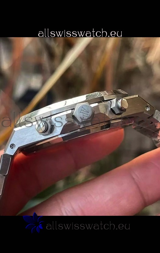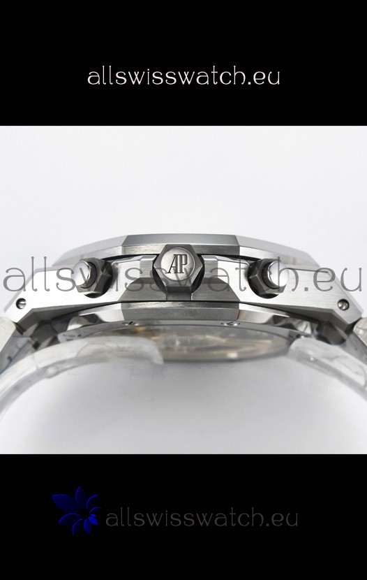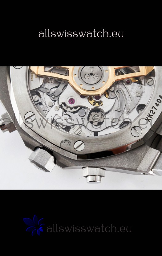 Machinery Layout exactly like Audemars Piguet 3126 Calibre Movement used in Authentic Audemars Piguet Offshore Watches. Built on Genuine Swiss 7753 Movement architecture with Functional stopwatch feature like the authentic with Seconds hand running at the 12 o clock Sub Dial