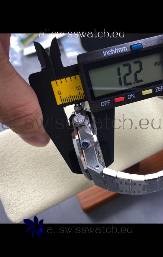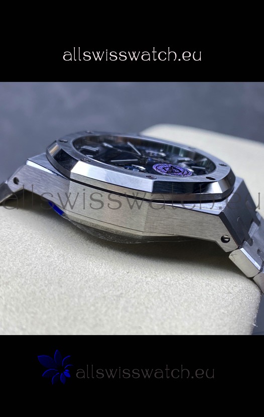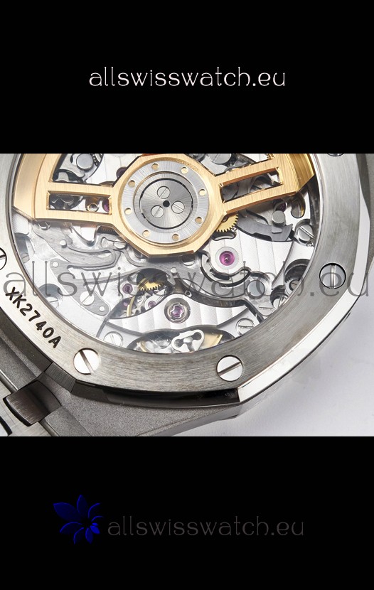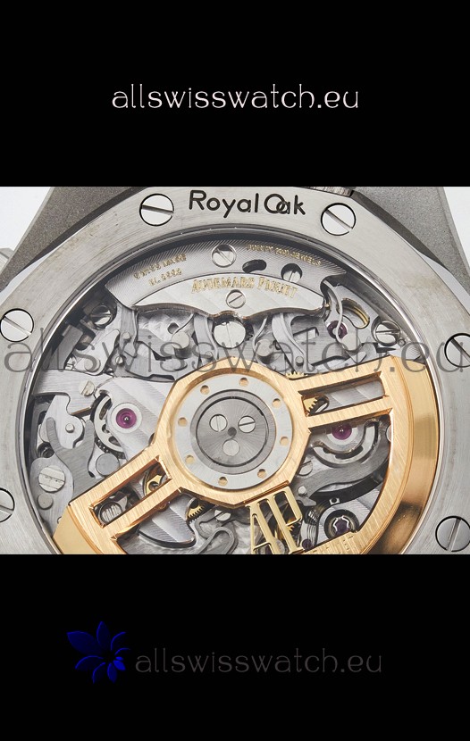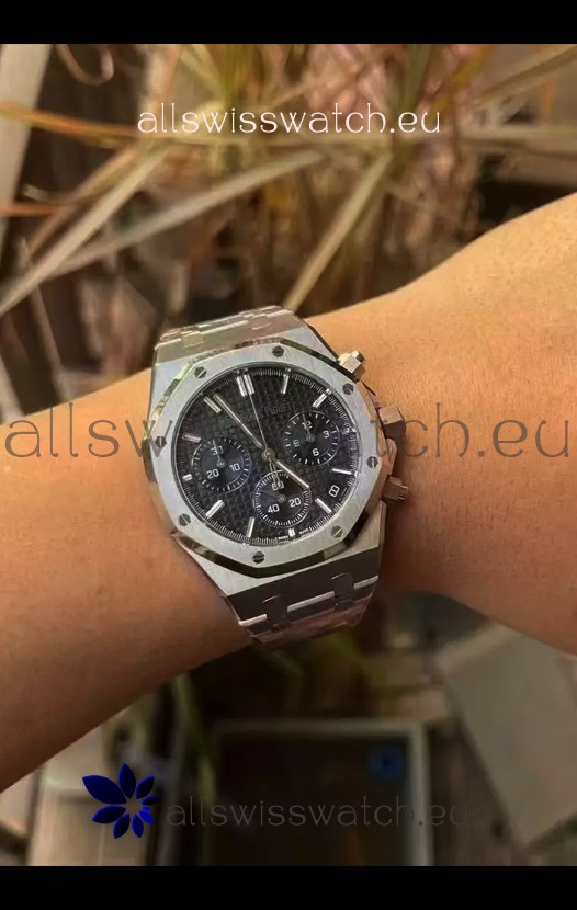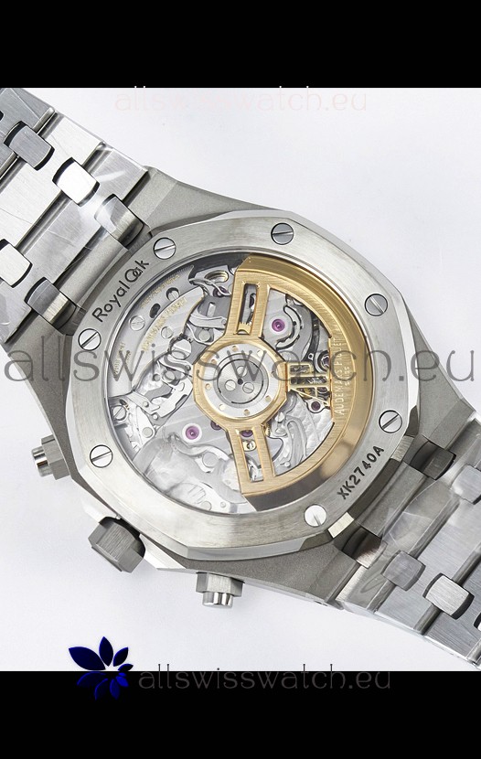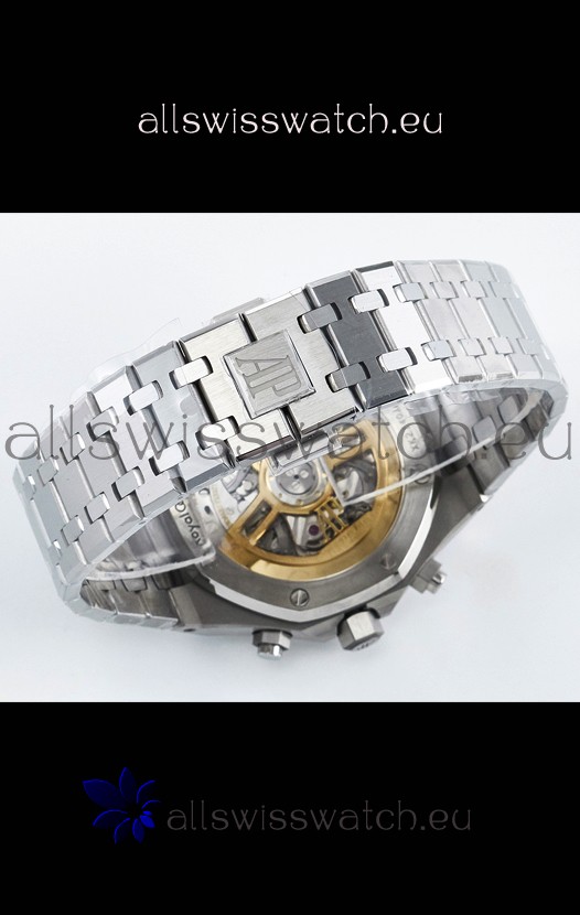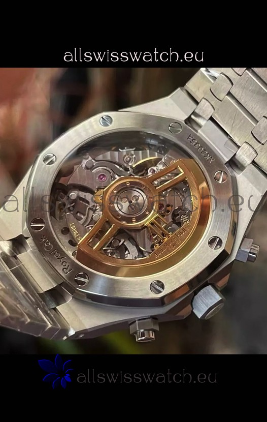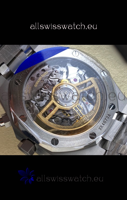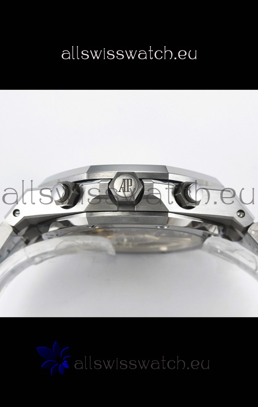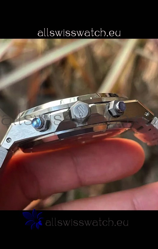 Machinery Layout exactly like Audemars Piguet 3126 Calibre Movement used in Authentic Audemars Piguet Offshore Watches. Built on Genuine Swiss 7753 Movement architecture with Functional stopwatch feature like the authentic with Seconds hand running at the 12 o clock Sub Dial
