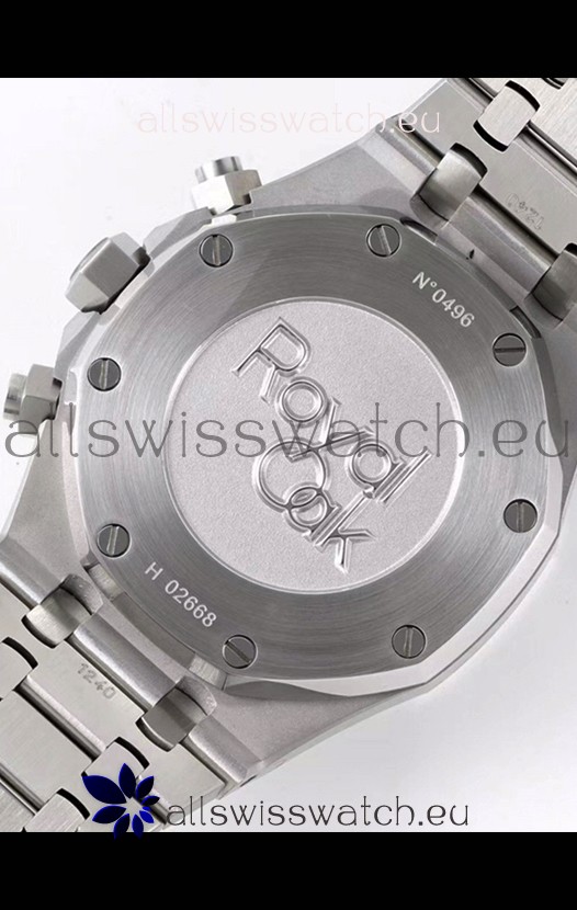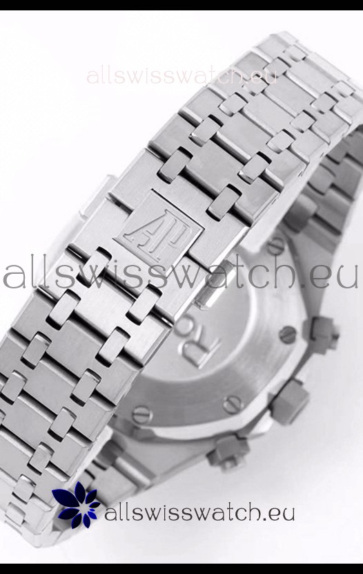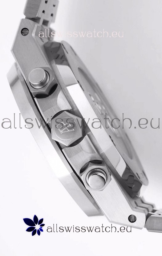 Machinery Layout exactly like Audemars Piguet 3126 Calibre Movement used in Authentic Audemars Piguet Offshore Watches. Built on Genuine Swiss 7753 Movement architecture with Functional stopwatch feature like the authentic with Seconds hand running at the 12 o clock Sub Dial