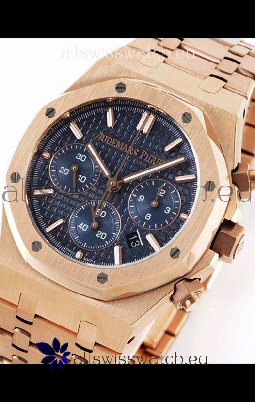 Audemars Piguet Royal Oak Chronograph 1:1 Mirror Replica - Rose Gold Casing Blue Dial in 41MM