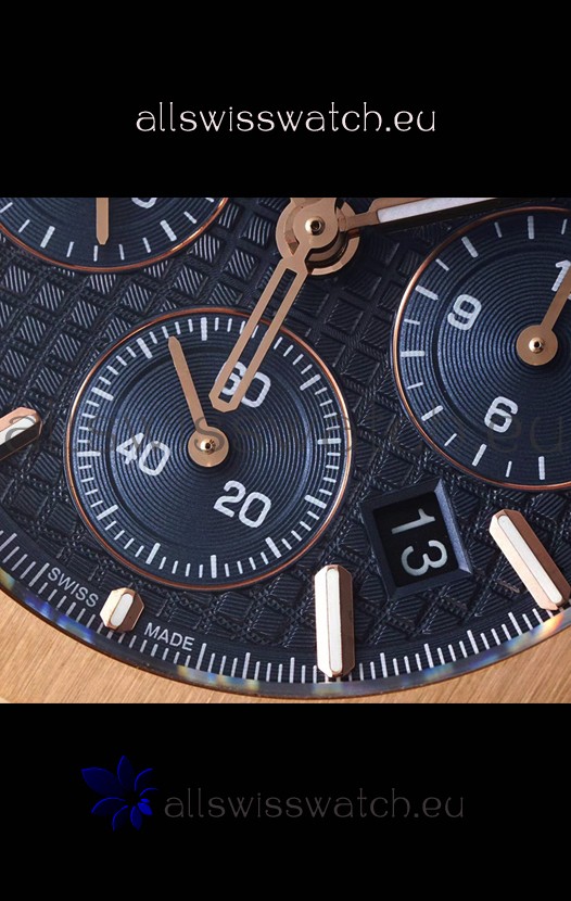 You're reviewing: Audemars Piguet Royal Oak Chronograph 1:1 Mirror Replica - Rose Gold Casing Blue Dial in 41MM
