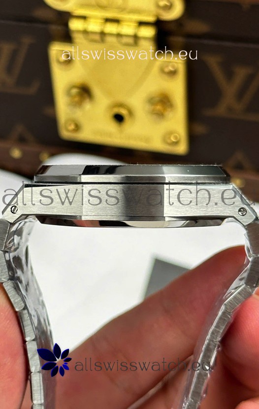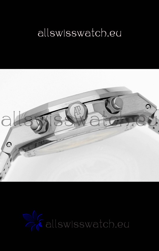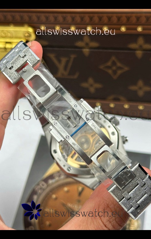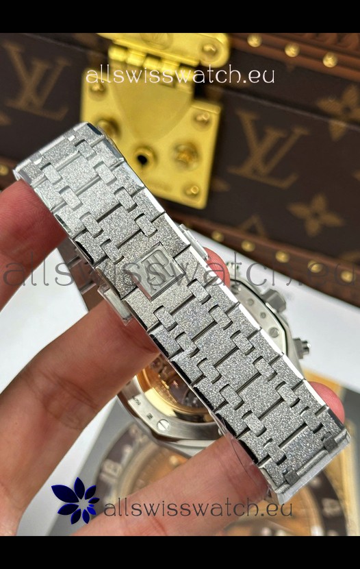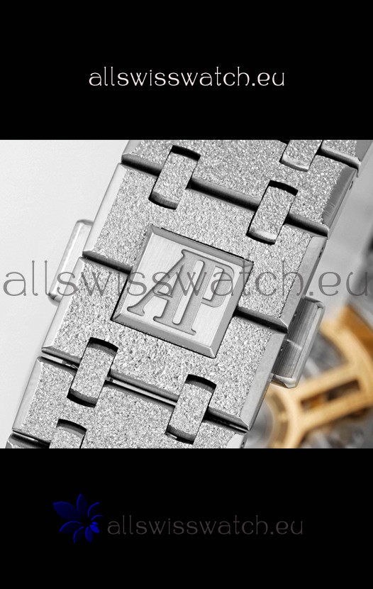 Frosted White Gold Plating on 904L Stainless Steel Strap completed with AP Markings and Engravings as per the originals and AP Folding Clasp