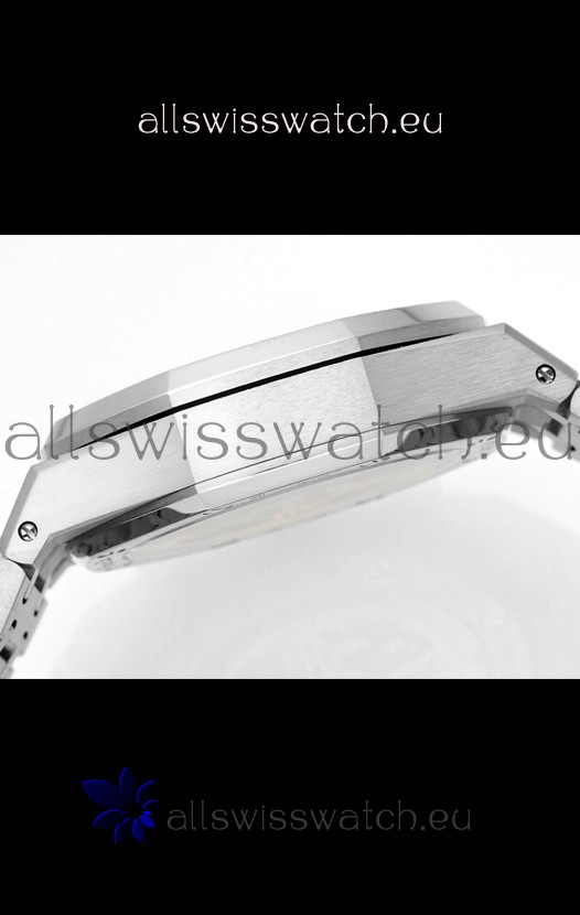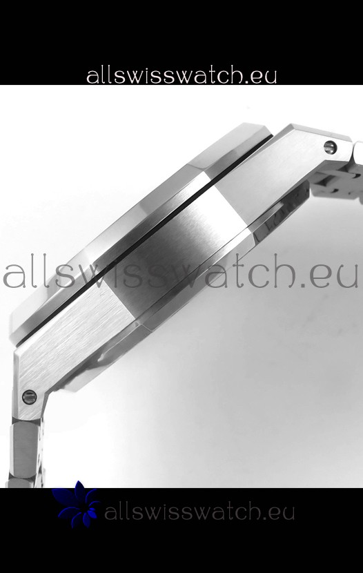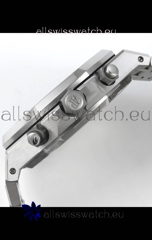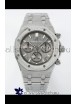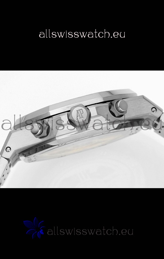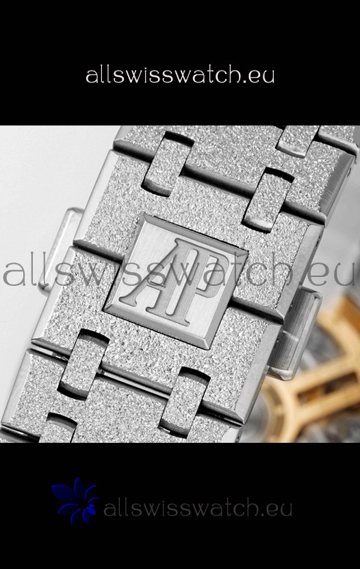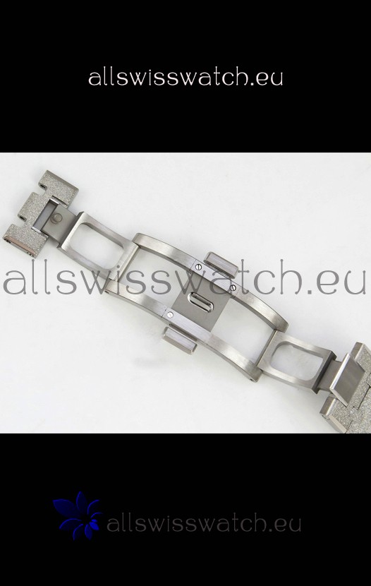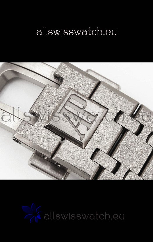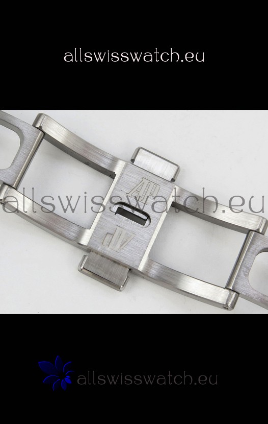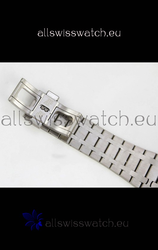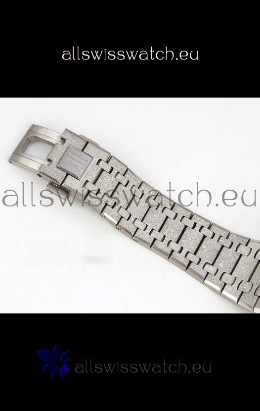Frosted White Gold Plating on 904L Stainless Steel Strap completed with AP Markings and Engravings as per the originals and AP Folding Clasp