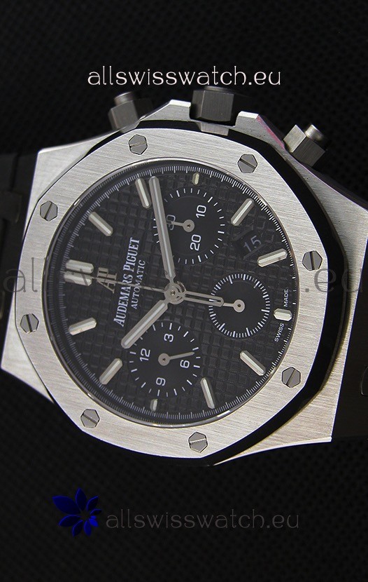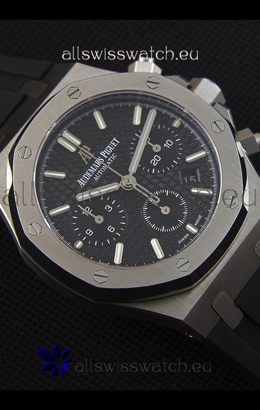 Top Grade Audemars Piguet Royal Oak Chronograph Black Dial Rubber Strap Swiss Replica Watch with Free Shipping and 1 year warranty