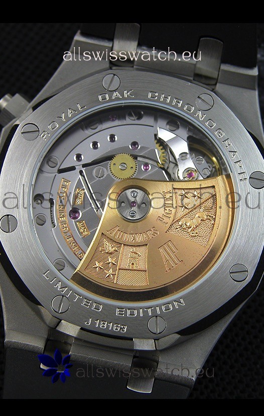 Genuine Swiss 7750 Movement re-aligned to resemble the 3126 Audemars Piguet Movement with Functional stopwatch feature like the authentic
