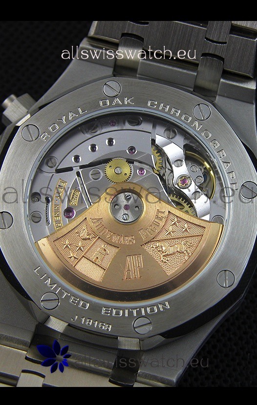 Genuine Swiss 7750 Movement re-aligned to resemble the 3126 Audemars Piguet Movement with Functional stopwatch feature like the authentic