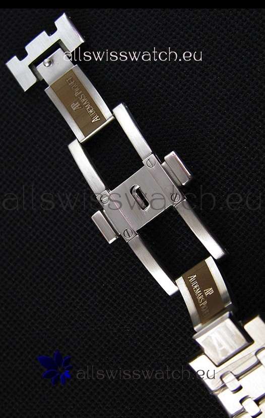 316L Stainless Steel strap linked with screws and Signature AP Folding Clasps with all correct markings and Engravings as per the Originals
