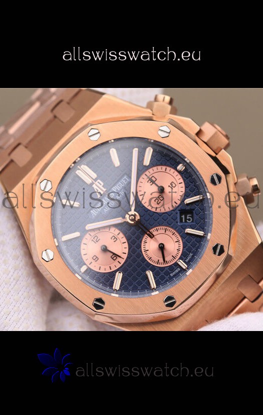 Audemars Piguet Royal Oak Chronograph Blue Dial Rose Gold on 904L Steel - 1:1 Mirror Replica
