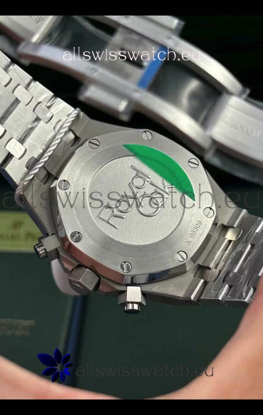 Machinery Layout exactly like Audemars Piguet 3126 Calibre Movement used in Authentic Audemars Piguet Offshore Watches. Built on Genuine Swiss 7753 Movement architecture with Functional stopwatch feature like the authentic with Seconds hand running at the 12 o clock Sub Dial