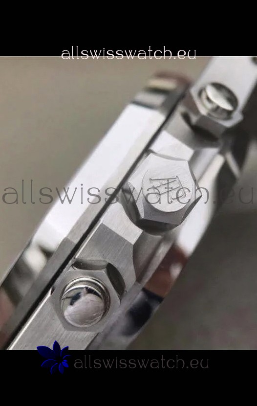 Genuine Swiss 7750 Movement re-aligned to resemble the 3126 Audemars Piguet Movement with Functional stopwatch feature like the authentic