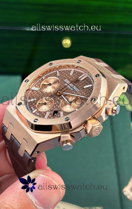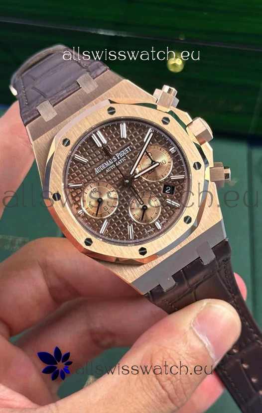Audemars Piguet Royal Oak Chronograph 1:1 Mirror Replica - Rose Gold Casing Brown Dial in 41MM