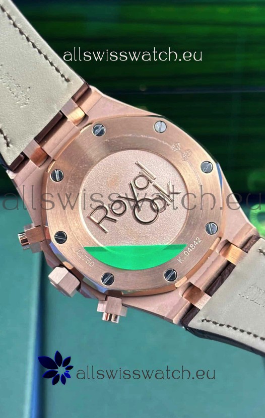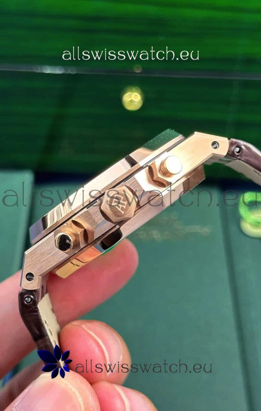 Audemars Piguet Royal Oak Chronograph Rose Gold Brown Dial Leather Strap Swiss Replica Watch
