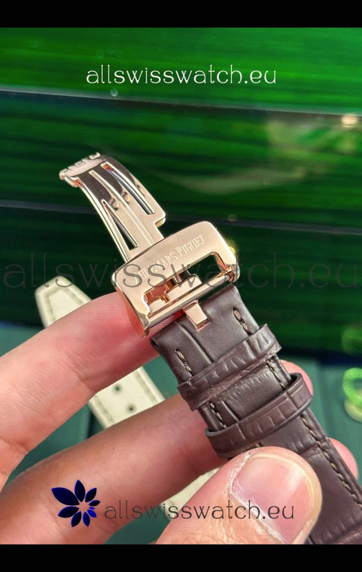 Genuine Brown Leather Strap completed with AP Markings and Engravings as per the originals and AP Folding Clasp