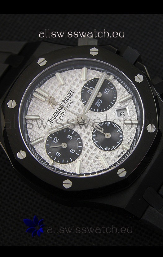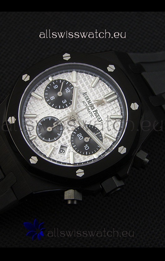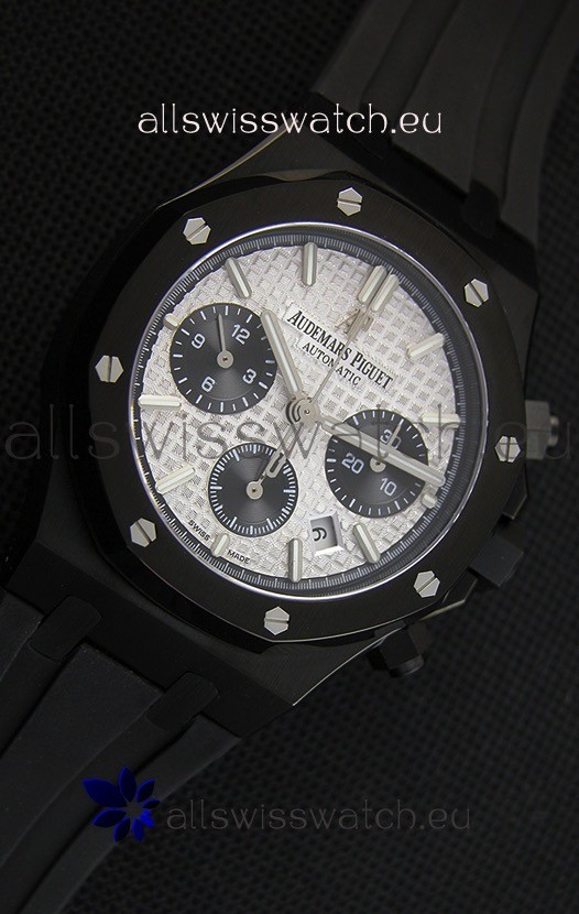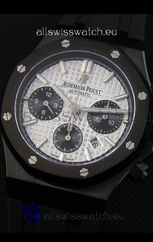 Audemars Piguet Royal Oak Chronograph Silver Toned Dial Rubber Strap PVD Case Swiss Replica Watch