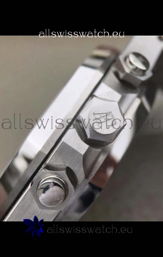 Genuine Swiss 7750 Movement re-aligned to resemble the 3126 Audemars Piguet Movement with Functional stopwatch feature like the authentic