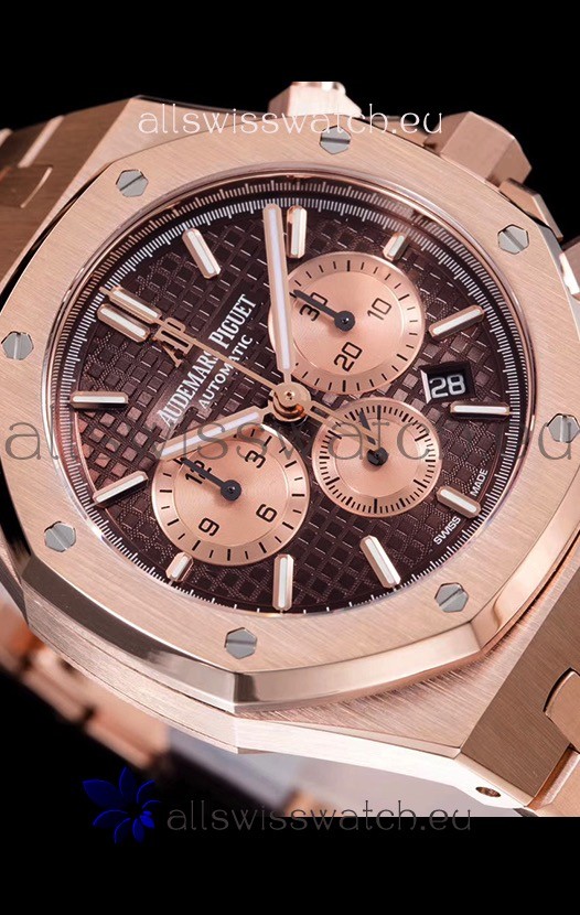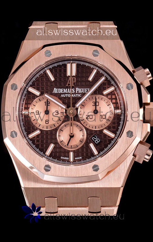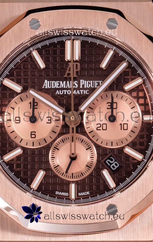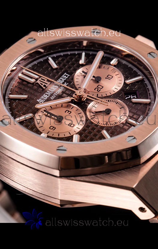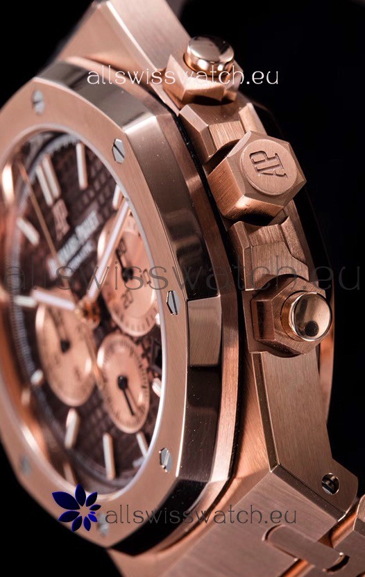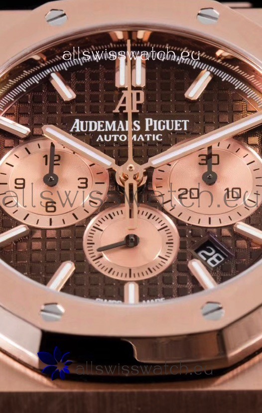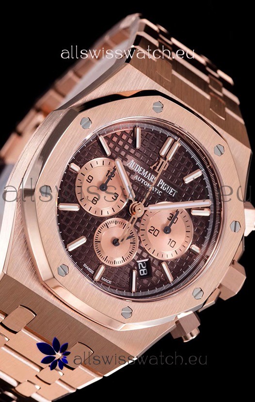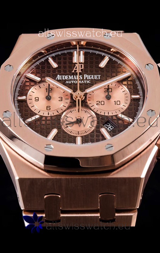 Audemars Piguet Royal Oak Chronograph Watch in Pink Gold Case Brown Dial