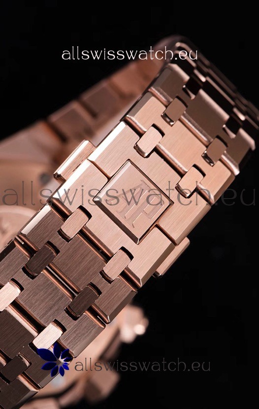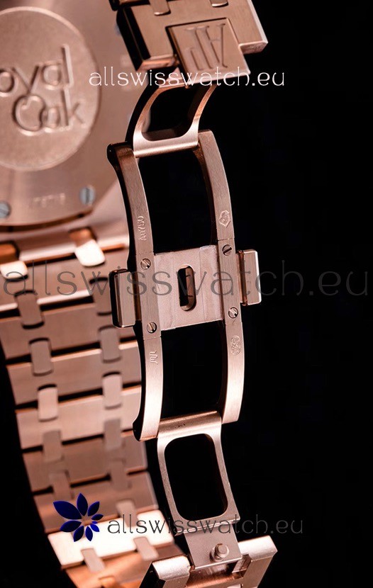 904L Steel with 18K Pink Gold Plating Strap linked with Screws and Signature AP Folding Clasp