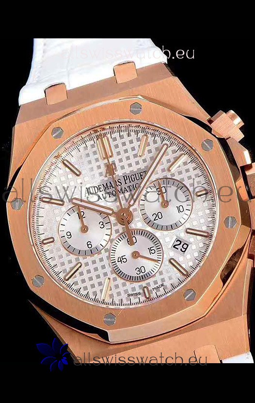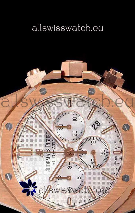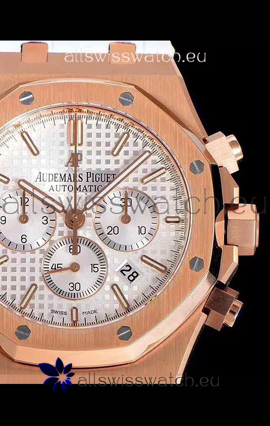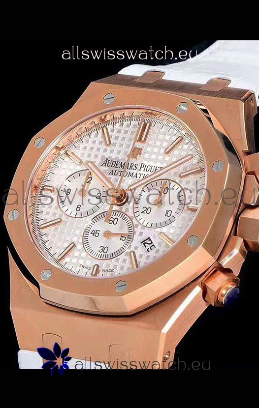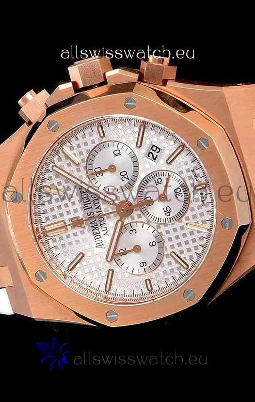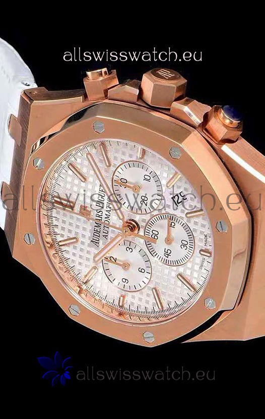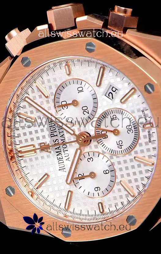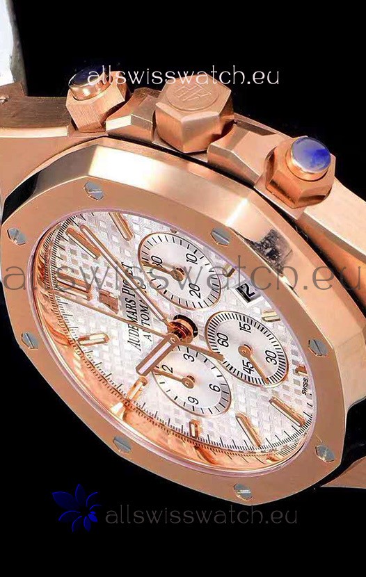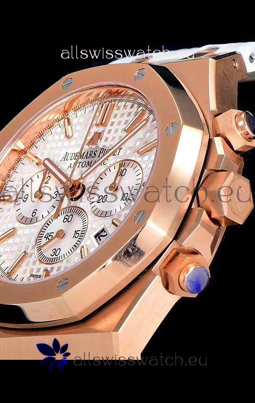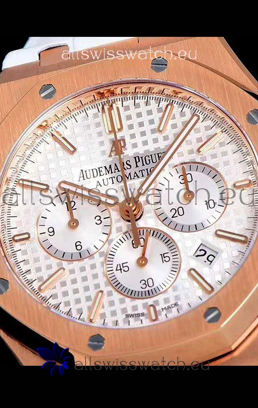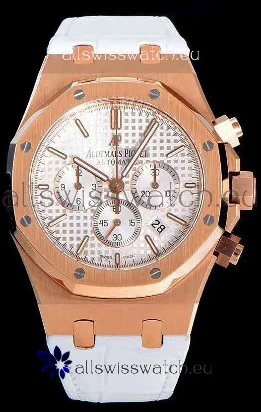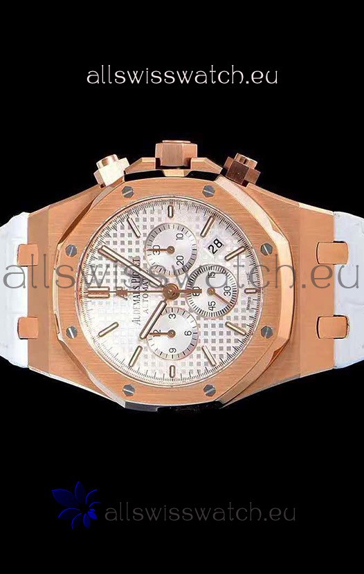 Audemars Piguet Royal Oak Chronograph White Dial Rose Gold on 904L Steel - 1:1 Mirror Replica
