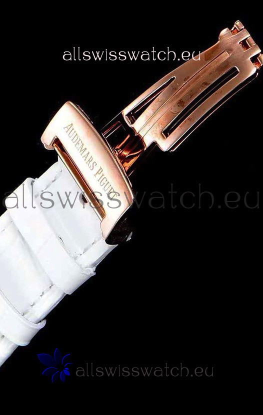 White Leather Strap with Rose Gold Plated Deployant Buckle as per the Originals