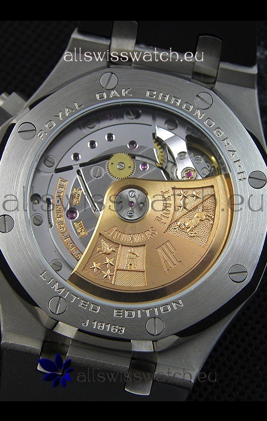 Genuine Swiss 7750 Movement re-aligned to resemble the 3126 Audemars Piguet Movement with Functional stopwatch feature like the authentic